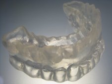 Bei diesem Modell handelt es sich um eine standardisierte, vorgefertigte Protrusionsschiene mit einem Vorbiss von 2 mm. Die Schiene ist aus thermoplastischem Kunststoff gefertigt und kann vom Käufer selber auf sein eigenes Gebiss angepasst werden.
